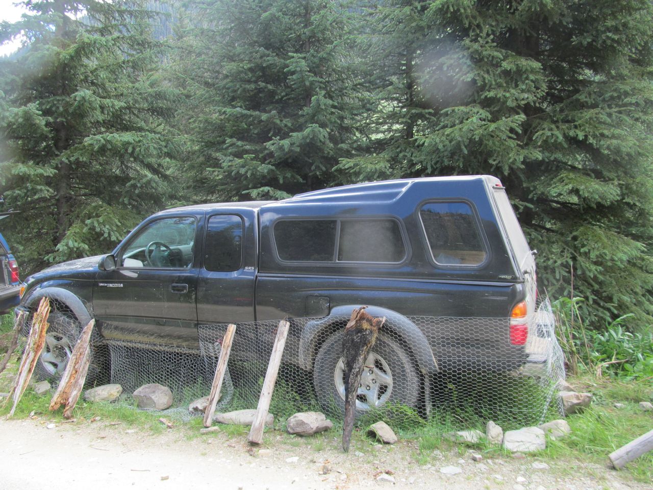 Securing the truck from the wildlife