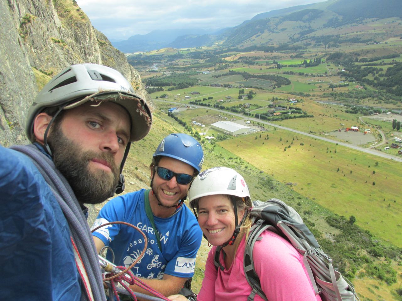 Myself, Rodrigo and Cristina on Escudo, a cliff in Coyhaique.