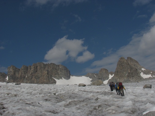 Before getting crushed by a lightening storm. Crossing the Bull Lake Glacier. Before getting crushed by a lightening storm. Crossing the Bull Lake Glacier.