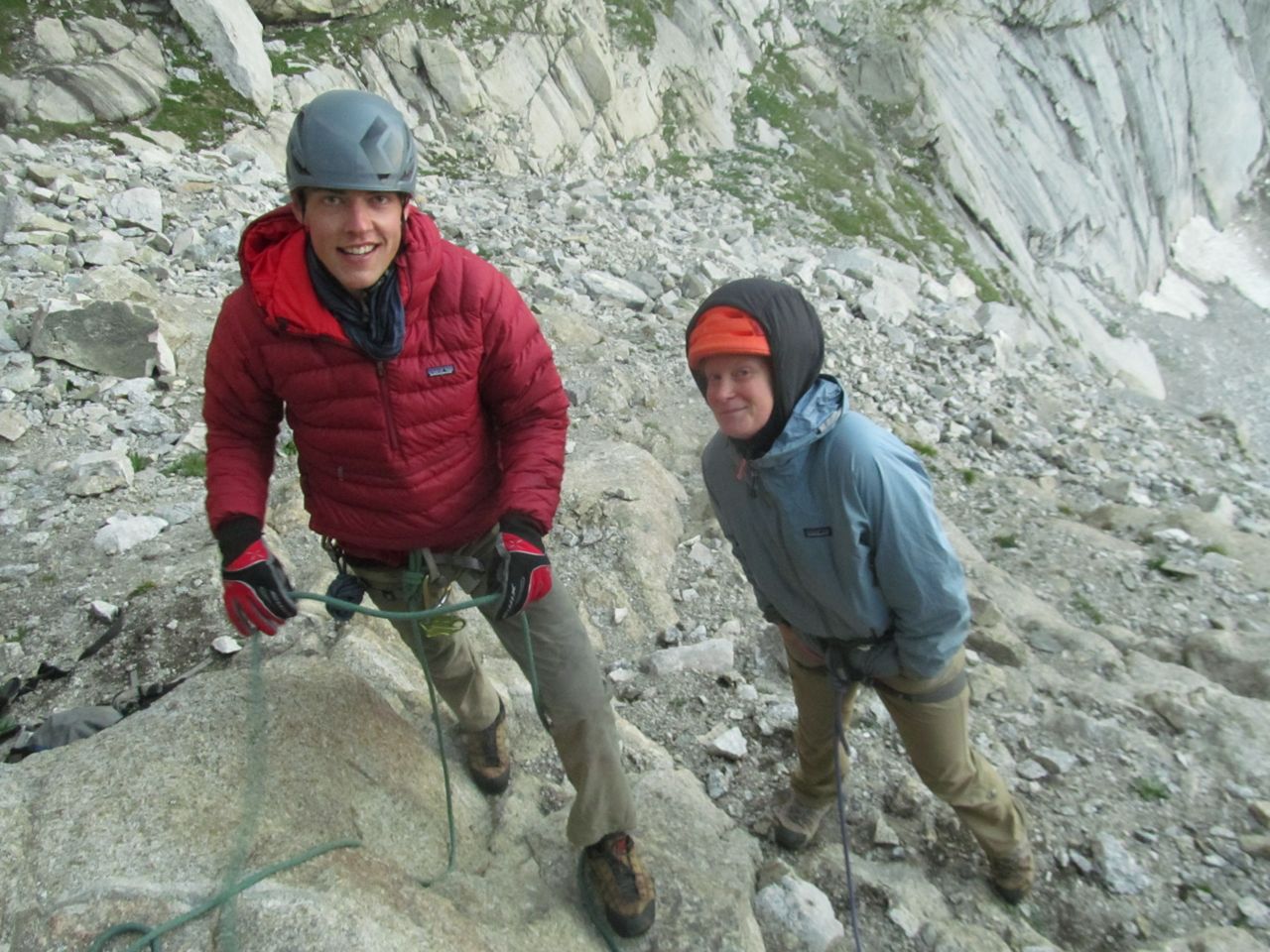 Anne and Jake at the base of the Southwest Arête on Lost Temple Spire in the Wind River Range